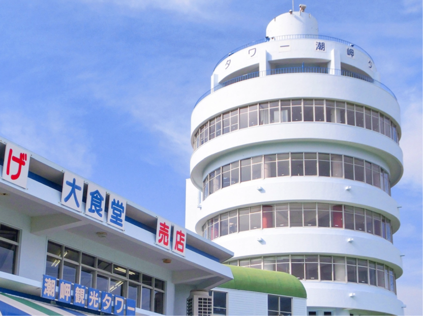 和歌山県東牟婁郡串本町にある展望タワーで太平洋に突き出るように本州最南端の潮岬にそびえたちます。天気のいい日は展望台から絶景が広がり太平洋を一望でき壮大な景色とともに水平線が見渡せ、丸い地球を体感できることでしょう。また売店はもちろんのこと、太平洋を一望できるオーシャンビューのレストランでは、近大マグロをはじめとした串本ならではの地元名物メニューを食べることができます。