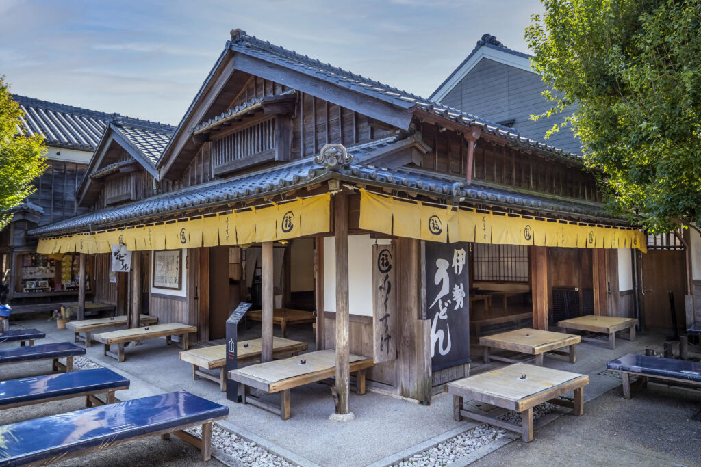 三重県伊勢市の伊勢神宮内宮門前町の中程にあるおかげ横丁は、江戸から明治期にかけての伊勢路の町並みを移築・再現した町で郷土料理などのグルメや伊勢土産を楽しむことができます。