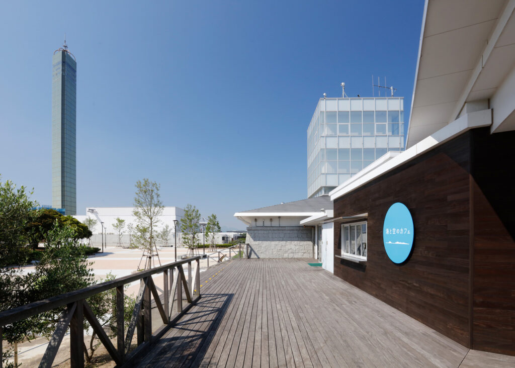 「海と空のカフェ」周辺は芝生広場や子供が遊べる遊具もあることから子供を遊ばせた帰りなどで休憩にも使うことができます。