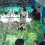 海水館には、他にも魚の特徴を生かした水槽がたくさんあります。通路の上をマイワシの大群が泳ぐブリッジ水槽ではファンタジックな光景が見られます。ときおりアカエイや他の魚もこのブリッジ水槽に紛れ込んでくるのですが、大水槽で泳ぐのとは違う魚の姿になんだか得した気分になります。おもしろい泳ぎ方を見せてくれるサメ、ツマグロの水槽、かわいらしい4種類のペンギンたちの暮らす水槽、大きなカニやイセエビのいる水槽なども子どもたちに人気があります。